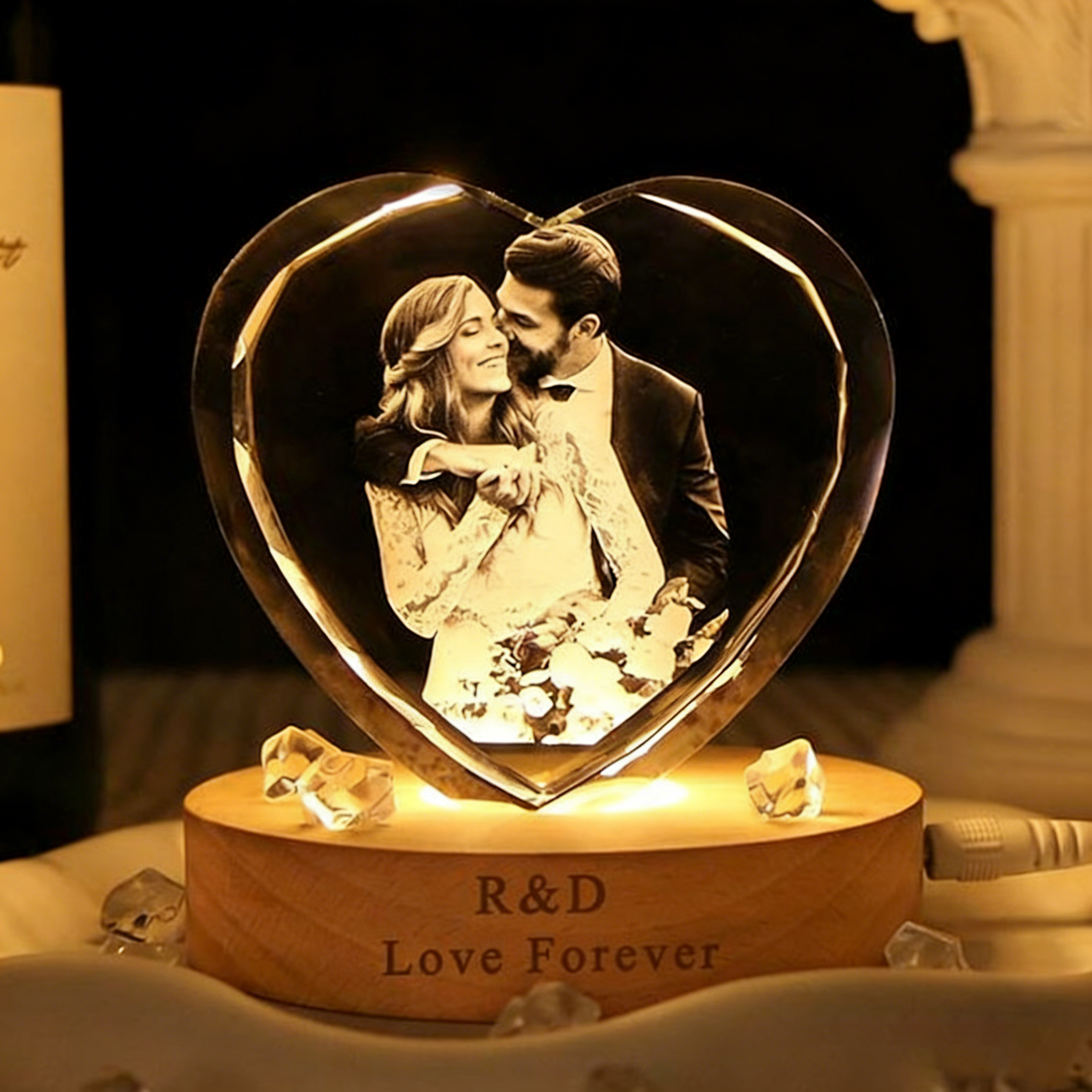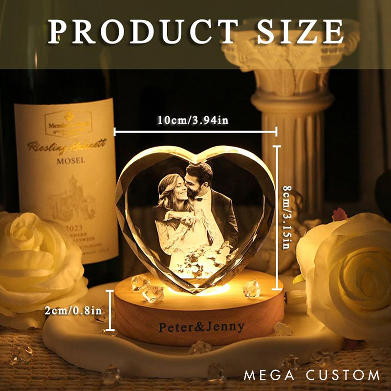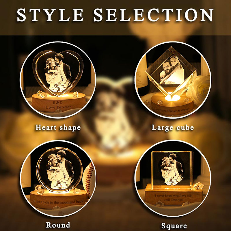 Celebrate your love with this customizable 3D crystal photo portrait night light, now available in four stunning styles: heart, large cube, round, and square. Perfect for wives, husbands, boyfriends, girlfriends, or couples, this keepsake can be personalized with your favorite photo and heartfelt text. The warm LED light enhances the crystal’s elegance, creating a romantic atmosphere for Valentine’s Day, Christmas, anniversaries, or date nights. Choose the style that best represents your relationship and make every moment shine with this timeless and meaningful gift!